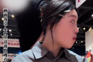 女子吃饭,身后男子路过直接喷射