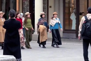 女生偶遇七位时尚阿姨逛街